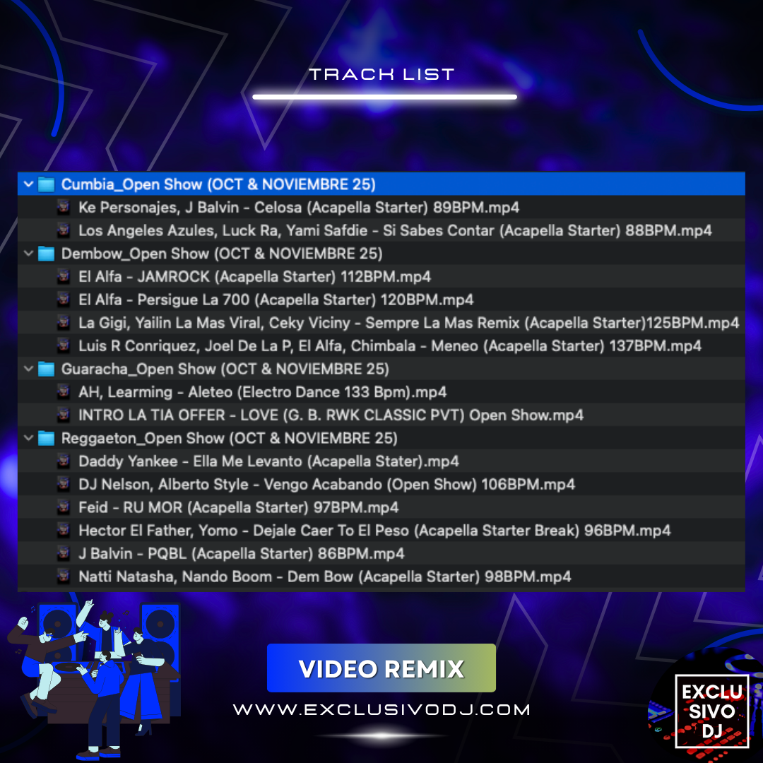 Incluye hits del momento, nuevas versiones de clásicos, cambios de ritmo, open show y acapella starter.